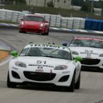 Here are the new MX Cup cars Diane & Steve will be racing next season. Diane’s car has green trim while Steve’s car has blue trim. These photos are of them on track practicing at Sebring.